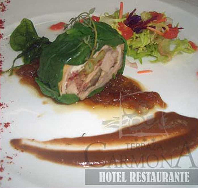 CABALLA A LA PARRILLA CON FLAN DE LETONES AL REMOJÓN DE MIGAS EN TORTA.
